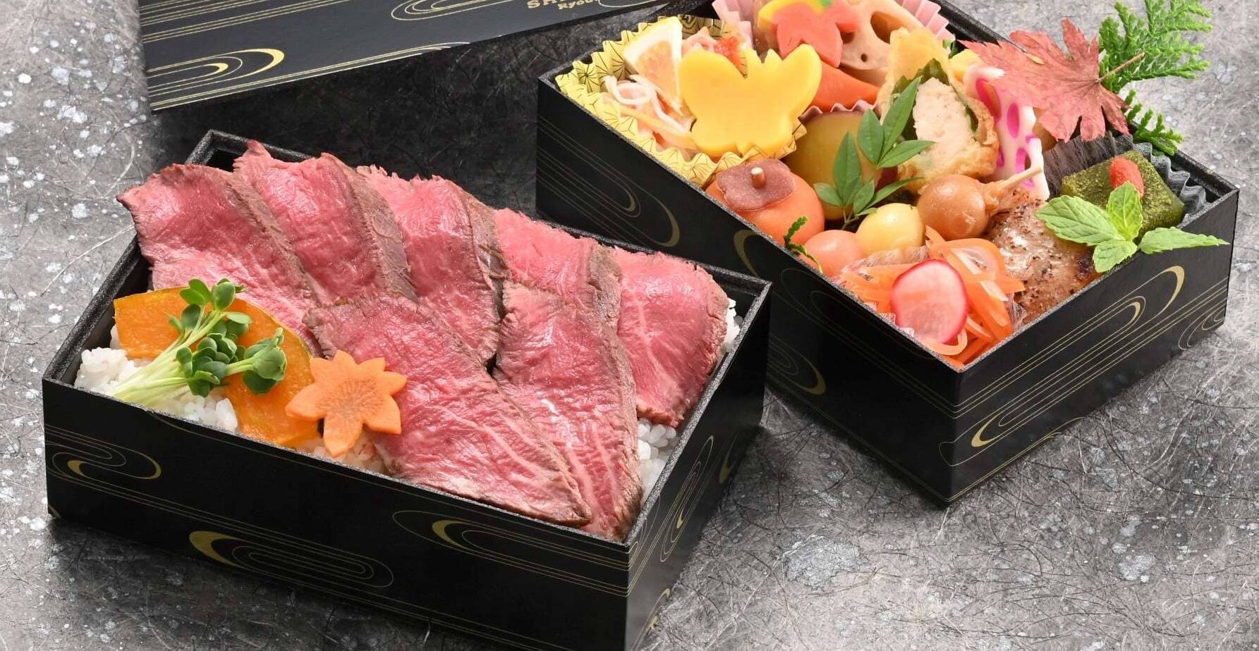 奥深く甘辛い割下がきいた仙台牛のすき焼きと白御飯、付け合わせと香の物でシンプルにすき焼きを味わうお弁当です。
